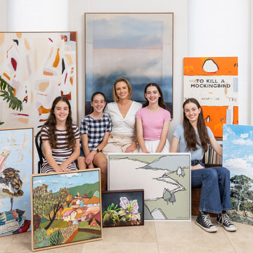 As a mother to four daughters and one of four girls herself Sydney art dealer Sarah Birtles often thinks of her eldest's reaction to her twin sisters’ arrival, ‘Wow, we got plenty ladies here!’ Sarah started Sarah Birtles Art + Advice in 2020 to fulfil her dream of selling original artwork by Australian artists from her home in the Blue Mountains so she can see her girls every day.