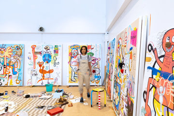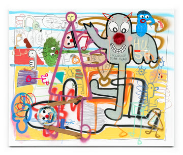 The exhibition, presented by art advisor Sarah Birtles, will be held at Peach Black Gallery in Chippendale. Titled Finding Mikey, the exhibition features 13 new works by the artist, including five ‘double-mattress-sized’ paintings, five collaged ‘toy paintings’ and a large-scale installation work that captures the spontaneity and humour of life.