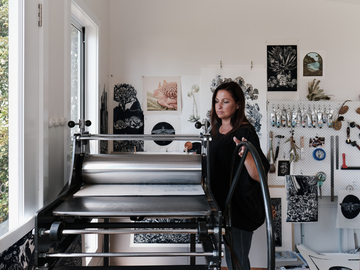 When I first began making art it was perfectly suited to my needs, but with the arrival of my first large press, new drying racks and a large working workbench, it’s fair to say I’ve outgrown it. Still, it works — and I love that it allows me to create while being at home with my three kids and our dog.