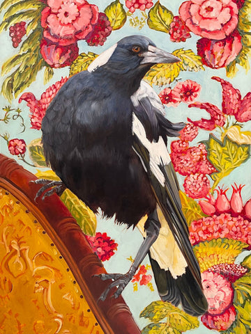 Even though I paint a lot of magpies, their dark feathers are based on a blend of burnt umber and ultramarine blue