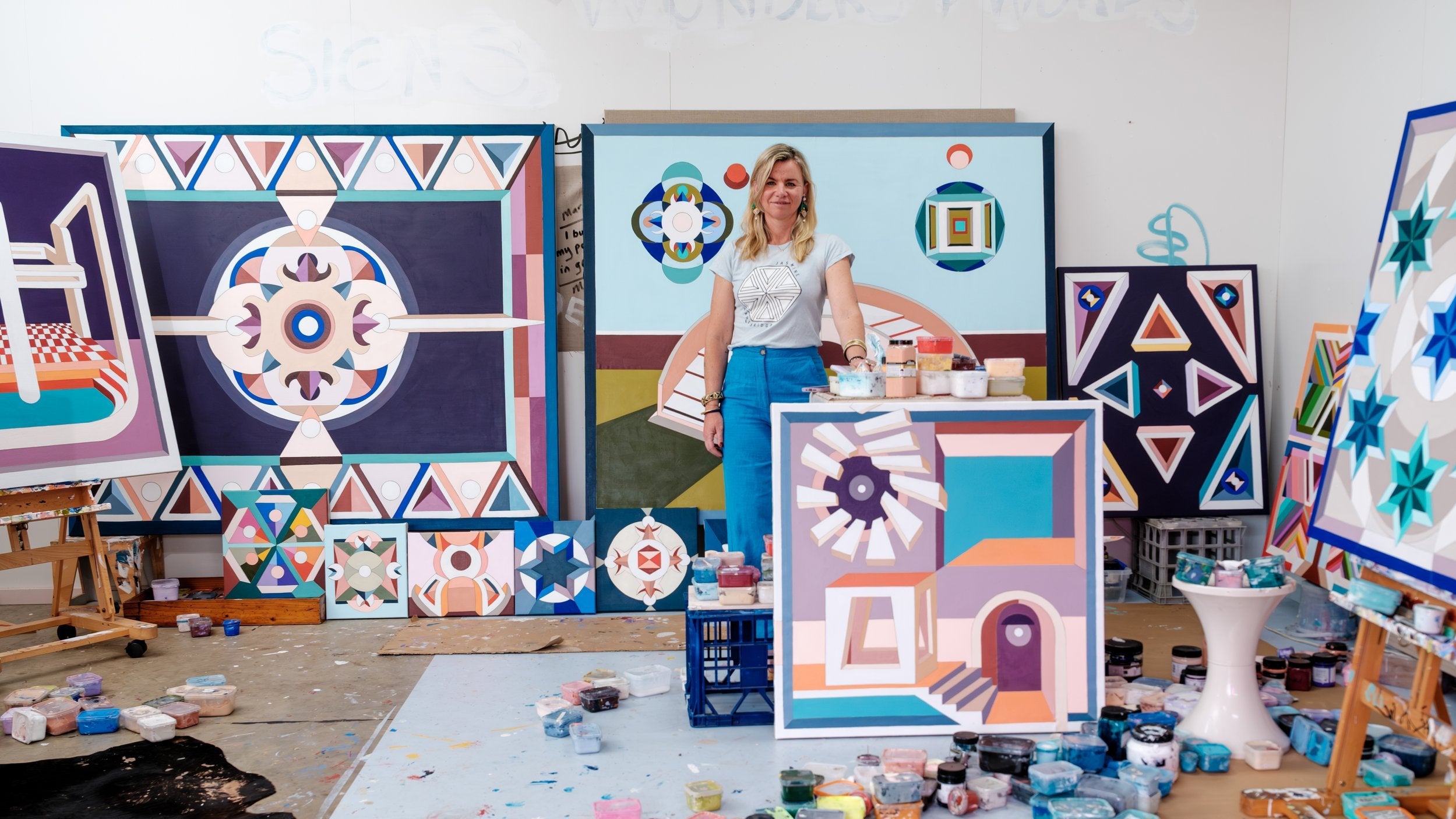 For Jasmine the process, ritual and labour of painting itself are of integral importance to the finished piece, as are the intentions and musings that are imbued in every brushstroke. Her subject matter combines architectural forms and geometric imaginings which are used as metaphors to tell stories around our shared human experience. The drawing in, meditative and contemplative value of the paintings are meant to be an antidote to our busy, technological and image rich daily lives.