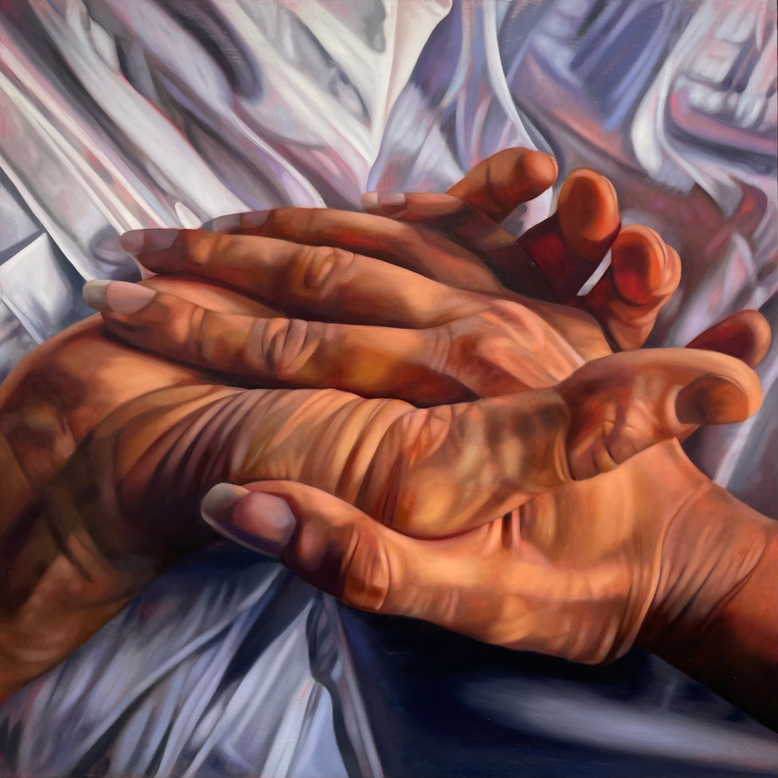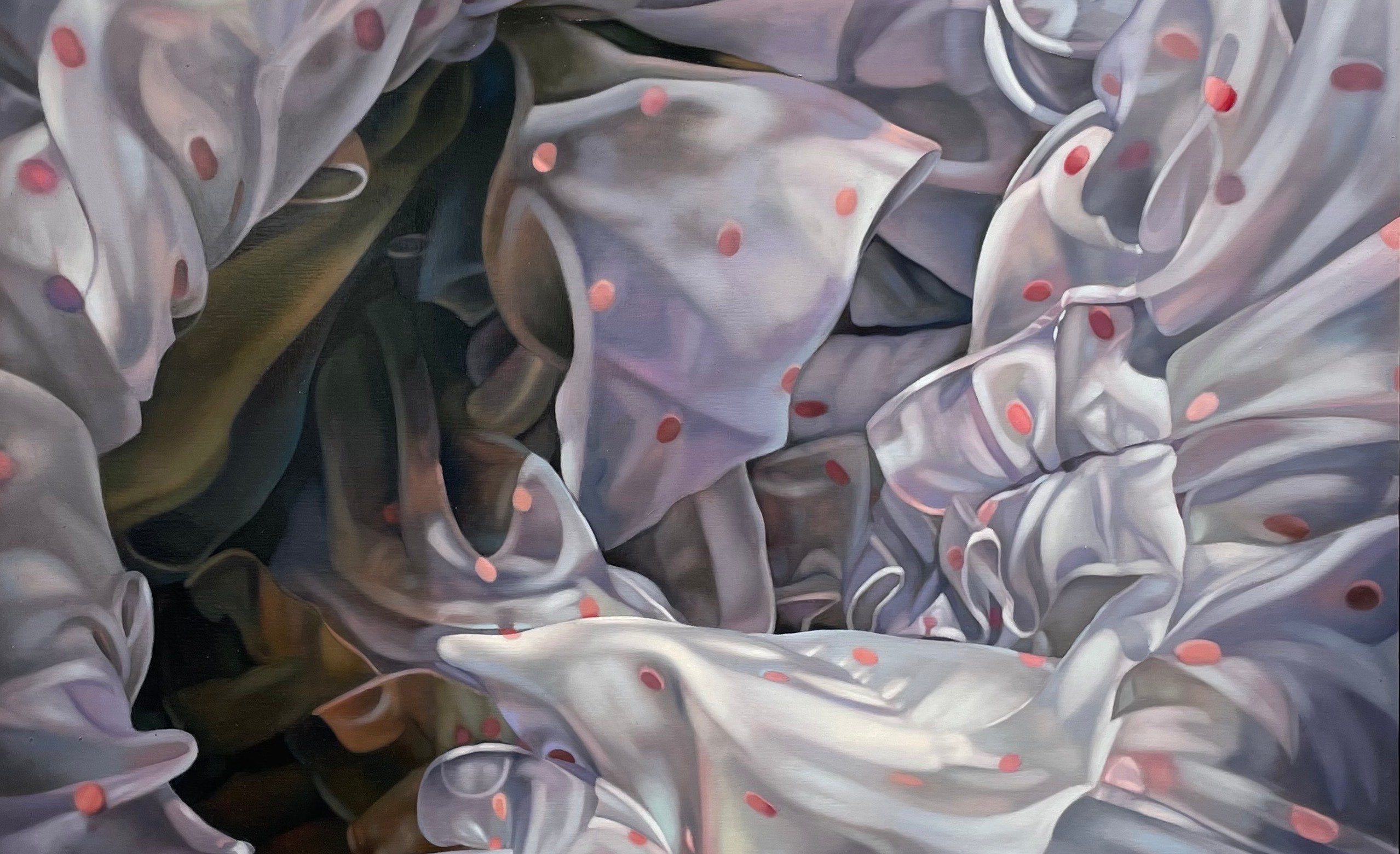 Her current practice utilises the subject of bedsheets as a metaphor for both comfort and restlessness. While bedsheets provide a place of security - a retreat from the world - they're also a place where the mind wanders and thoughts are laid bare.