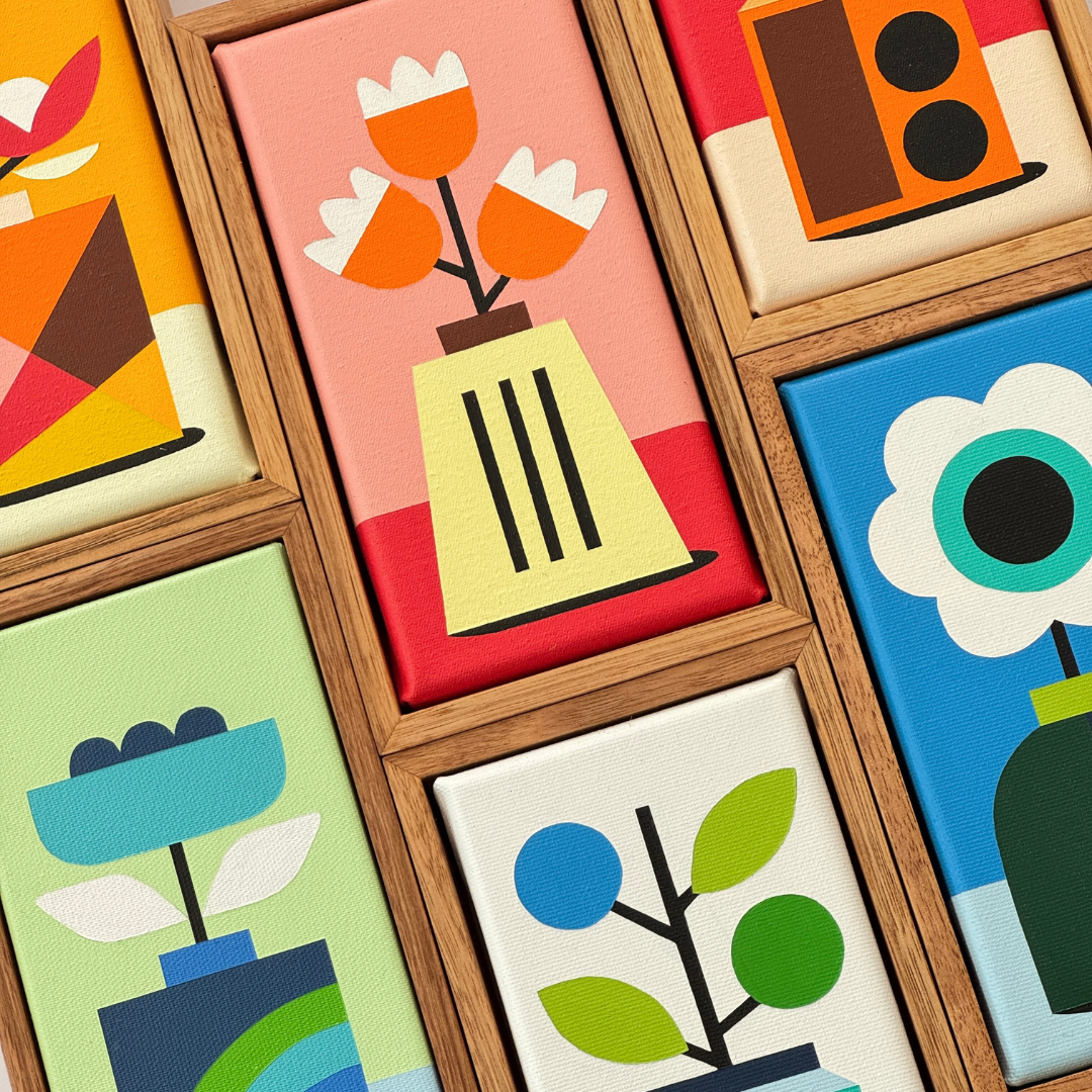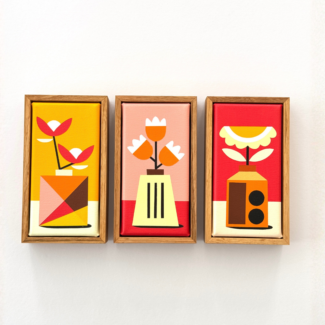 Andria Beighton is a Melbourne based artist, currently absorbed in the creation of distinctive, still life paintings with a floral focus. A self taught artist, Andria has developed a unique, meticulously clean and balanced style. Andria’s background in floristry and accessory design are evident in her subject selection and carefully constructed colour palettes.