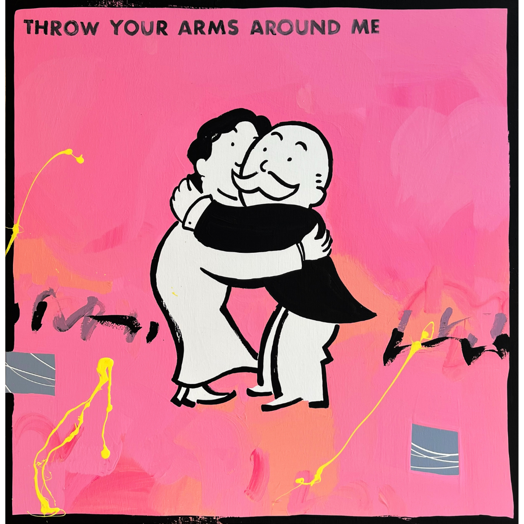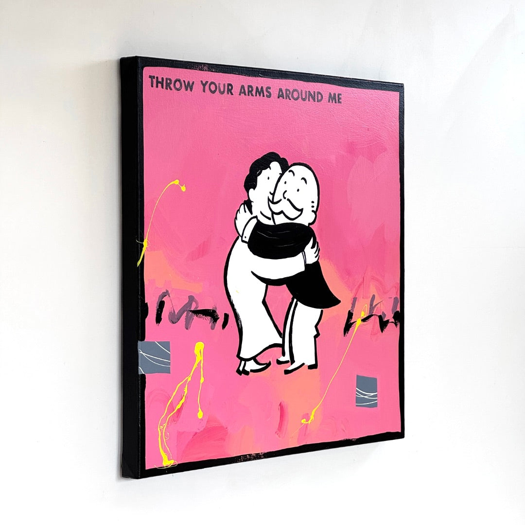 This original painting by Ben Tankard is created with artist-grade acrylic paints on canvas. The surface is richly textured, built up of multiple layers, with lumps and drips and spatters. The sides of the canvas are painted, and the painting is sealed beneath a glossy varnish. It is signed and titled on reverse.