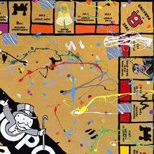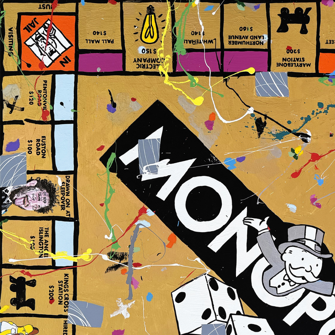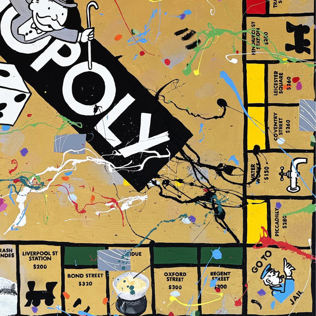 This original painting by Ben Tankard is created with artist-grade acrylic paints on canvas. The surface is richly textured, built up of multiple layers, with lumps and drips and spatters. The sides of the canvas are painted, and the painting is sealed beneath a glossy varnish. It is signed and titled on reverse.