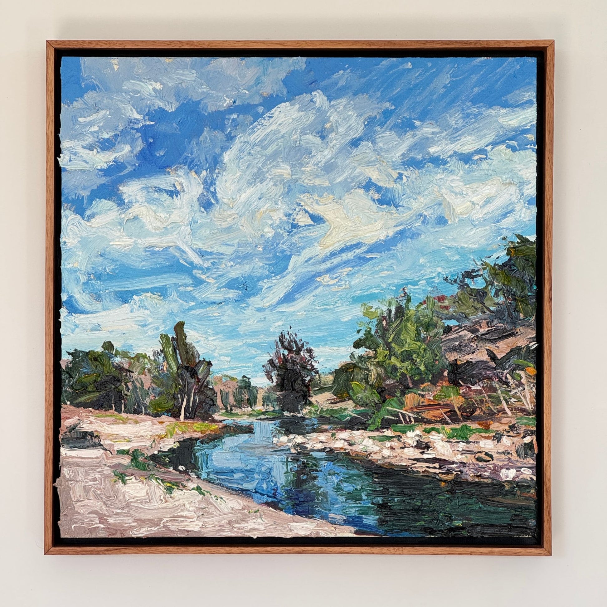 This original oil painting comes ready to hang. It is signed and dated by the artist on the back.