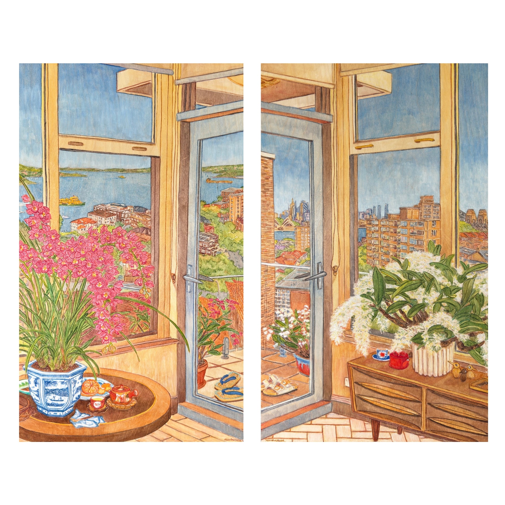 Hailing from Sydney, Kean Onn See is an artist dedicated to the time-consuming practice of painting on carved woodblocks. Heavily inspired by Australian artist, Cressida Campbell and Japanese woodblock prints his work exhibits meticulous attention to detail and uplifting compositions of domestic scenes.