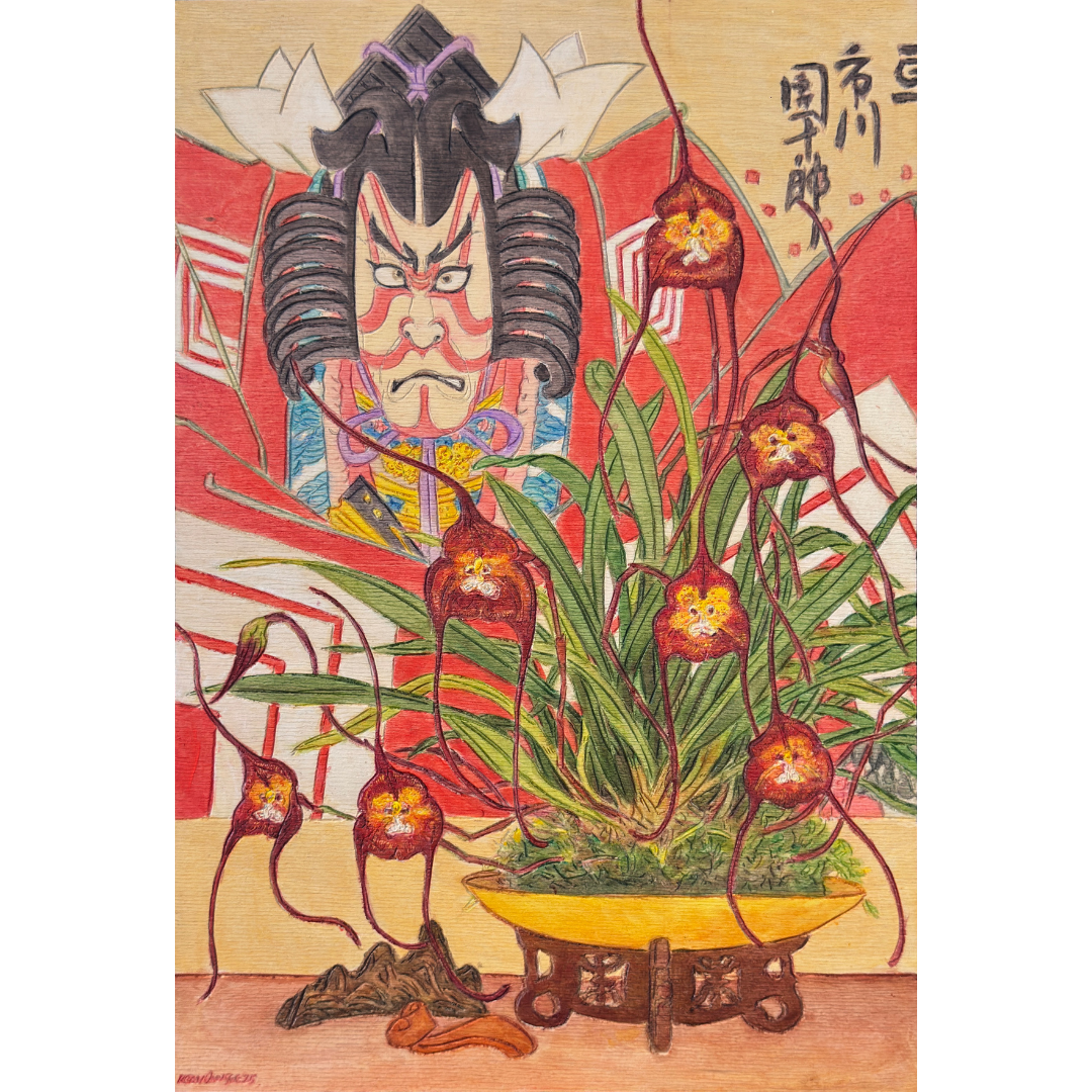 An original painting by Kean Onn See, carved and painted on woodblock panels. It comes wired and ready to hang.