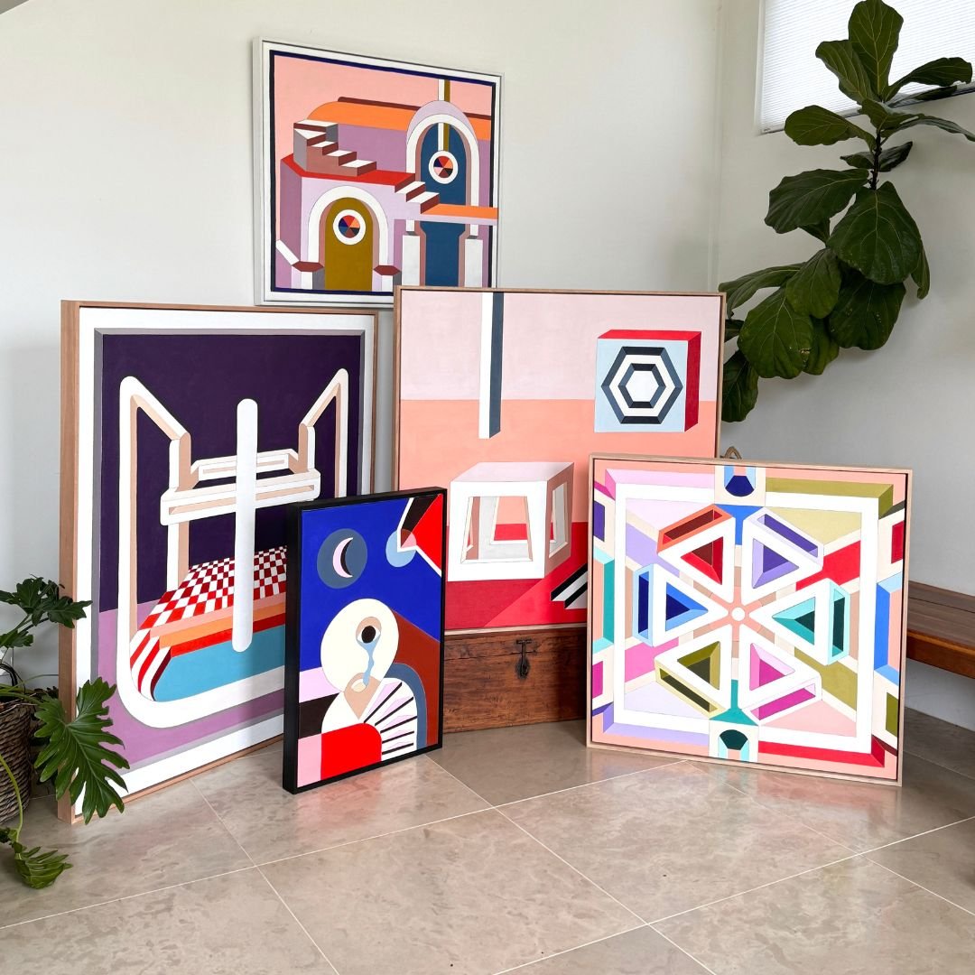 A collectable original painting by Jasmine Mansbridge created with artist grade acrylic paints on fine quality linen and framed in Australian made timber frames. Each work is signed by the artist on the back. It comes wired and ready to hang.