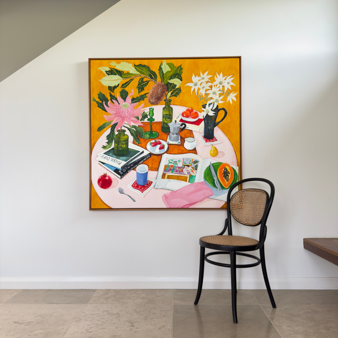 This is an original painting by Melanie Vugich created with artist grade oil paints on canvas and framed in Australian made timber frames. Each work is initialed by the artist with the year of creation on the front of the canvas eg. MV25. It comes wired and ready to hang.