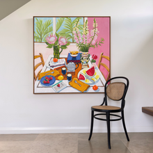 This is an original painting by Melanie Vugich created with artist grade oil paints on canvas and framed in Australian made timber frames. Each work is initialed by the artist with the year of creation on the front of the canvas eg. MV25. It comes wired and ready to hang.