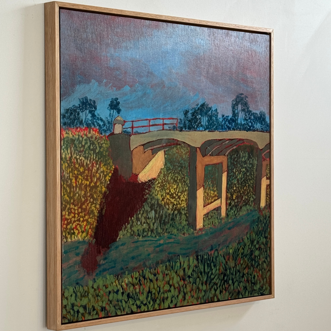 Painted en plein air (outside) in the wine-country of Orange NSW. This series marks a happy return to the familiar location of the artist’s good friend’s vineyard. Neil visited in the winter of 2023, riding the 5 hour journey on his Royal Enfield motorbike over the Great Dividing Range and through the plains of the Central West. Strapped his back he carried 20 timber boards on which to paint. An old black leather bag secured to the back of his bike contained his paints and brushes.