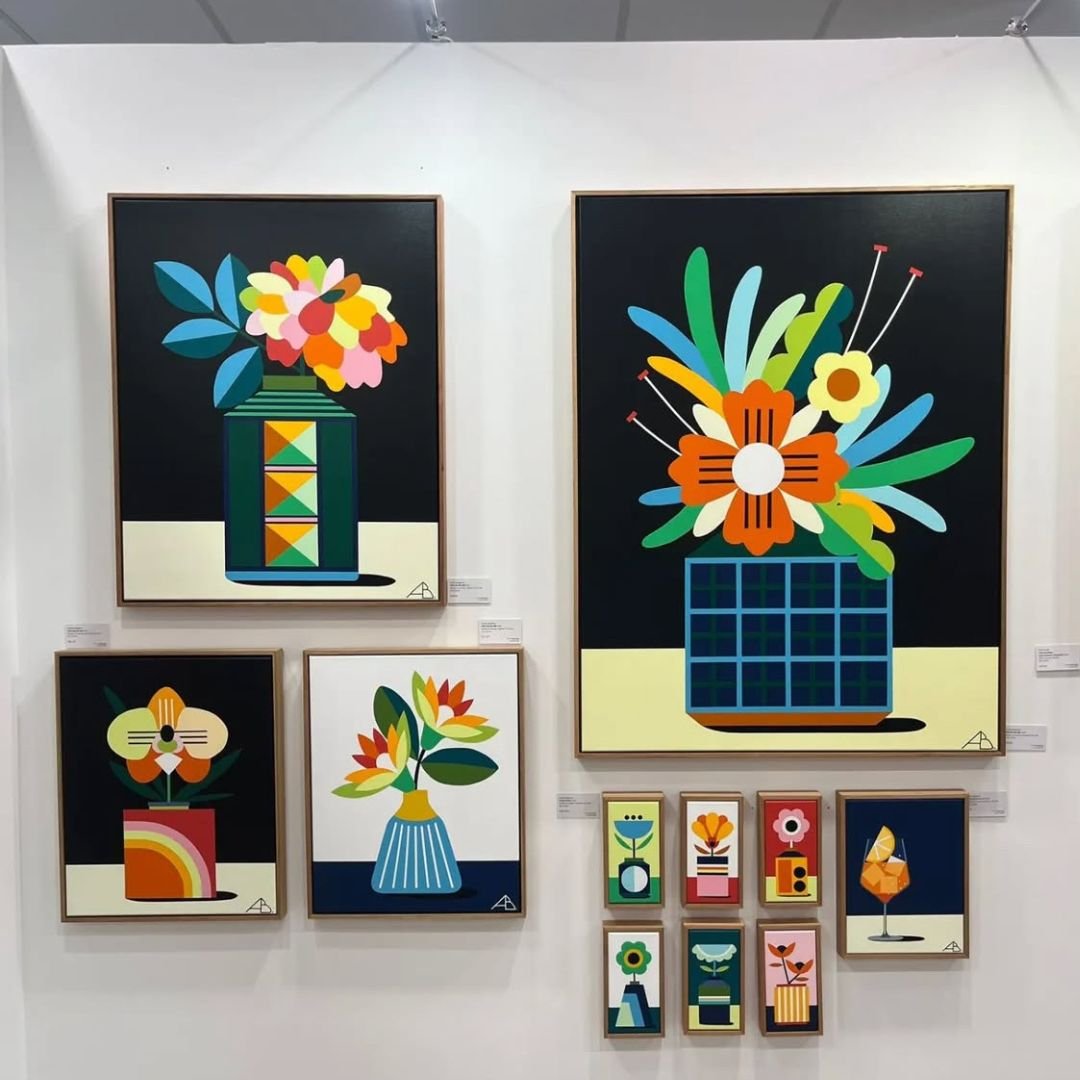 Andria Beighton is a Melbourne based artist, currently absorbed in the creation of distinctive, still life paintings with a floral focus. A self taught artist, Andria has developed a unique, meticulously clean and balanced style. Andria’s background in floristry and accessory design are evident in her subject selection and carefully constructed colour palettes.