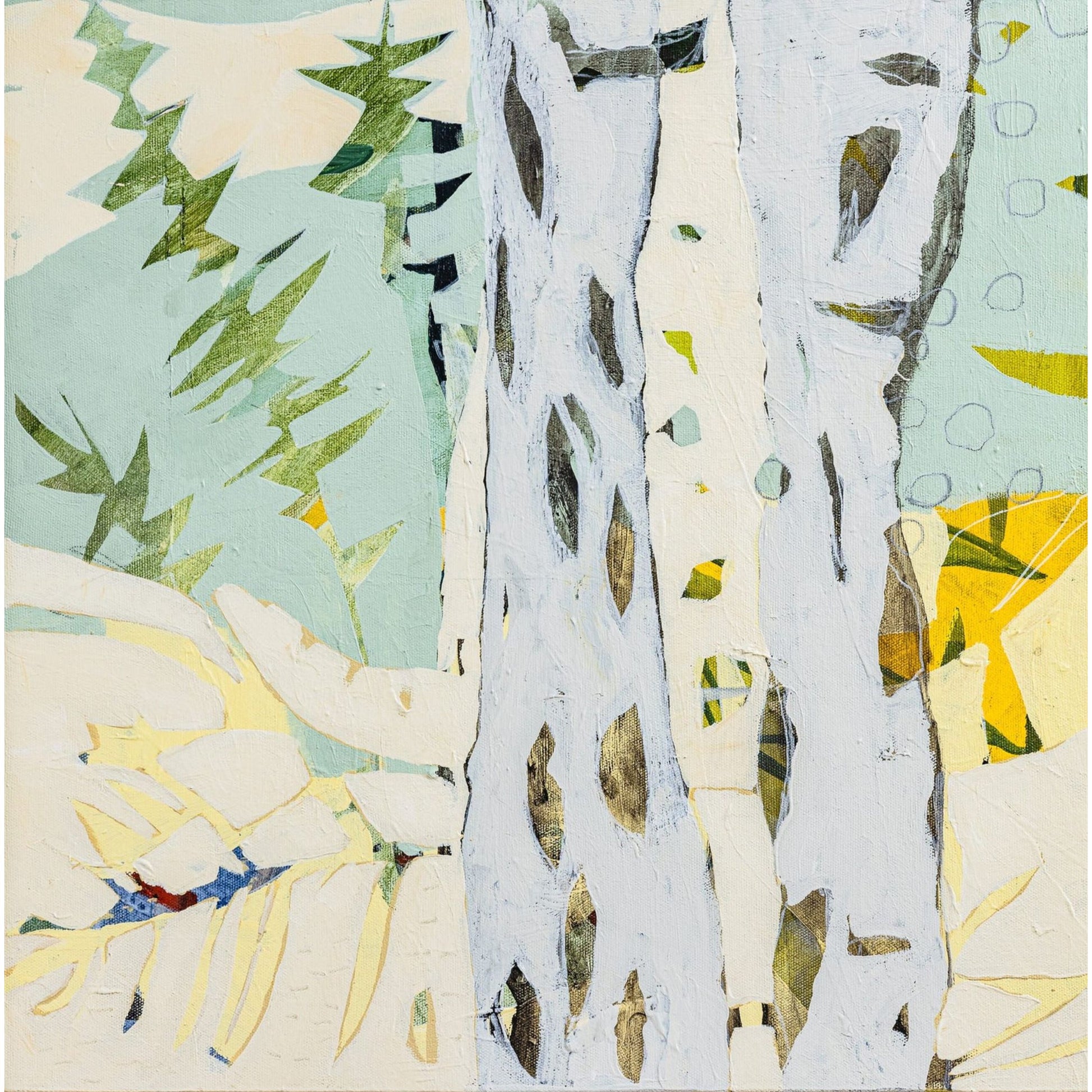 Inspired by the artist’s botanical observations as she walks and cycles around the streets of Sydney. This artwork is an imagined landscape replete with organic patterns, repeated motifs and gentle colours. Zoe both incises into surface of the timber board and applies acrylic paints to achieve her uniquely tactile and multi-layered images.